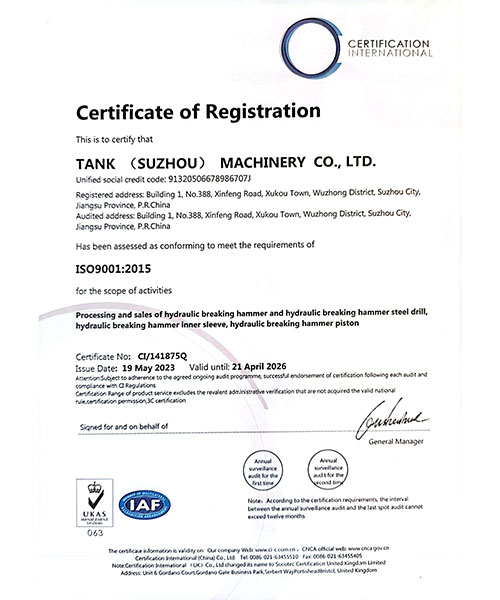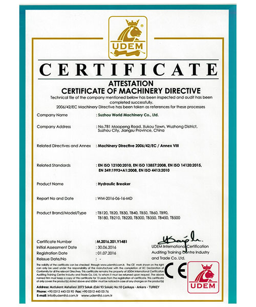 公司成立于2006年,經(jīng)過全體員工數(shù)十年來的共同奮斗,現(xiàn)已生產(chǎn)釬桿直徑45mm-245mm各型號破碎錘,更小可配1.2噸位小型挖掘機(jī),更大可配120噸位大型挖 掘機(jī),其中大錘型號更加齊全,釬桿直徑185.190.195.200.210.215.220.235.245均有生產(chǎn)制造。公司和國內(nèi)同行業(yè)相比,屬于體系比較健全的生產(chǎn)廠家, 機(jī)芯部件除密封件以外,均由世工自主生產(chǎn),大錘設(shè)計(jì)均由由公司主要技術(shù)人員自主構(gòu)思、自主完成,目前到245為止,在打擊力和穩(wěn)定性上,都屬于非常成熟的 產(chǎn)品。2013年公司順利通過全球CE認(rèn)證和ISO9001認(rèn)證,2015年成功加入美國AEM設(shè)備制造商協(xié)會,近年來也陸續(xù)得到各代理商和行業(yè)內(nèi)人士高度評價(jià)與認(rèn)可。